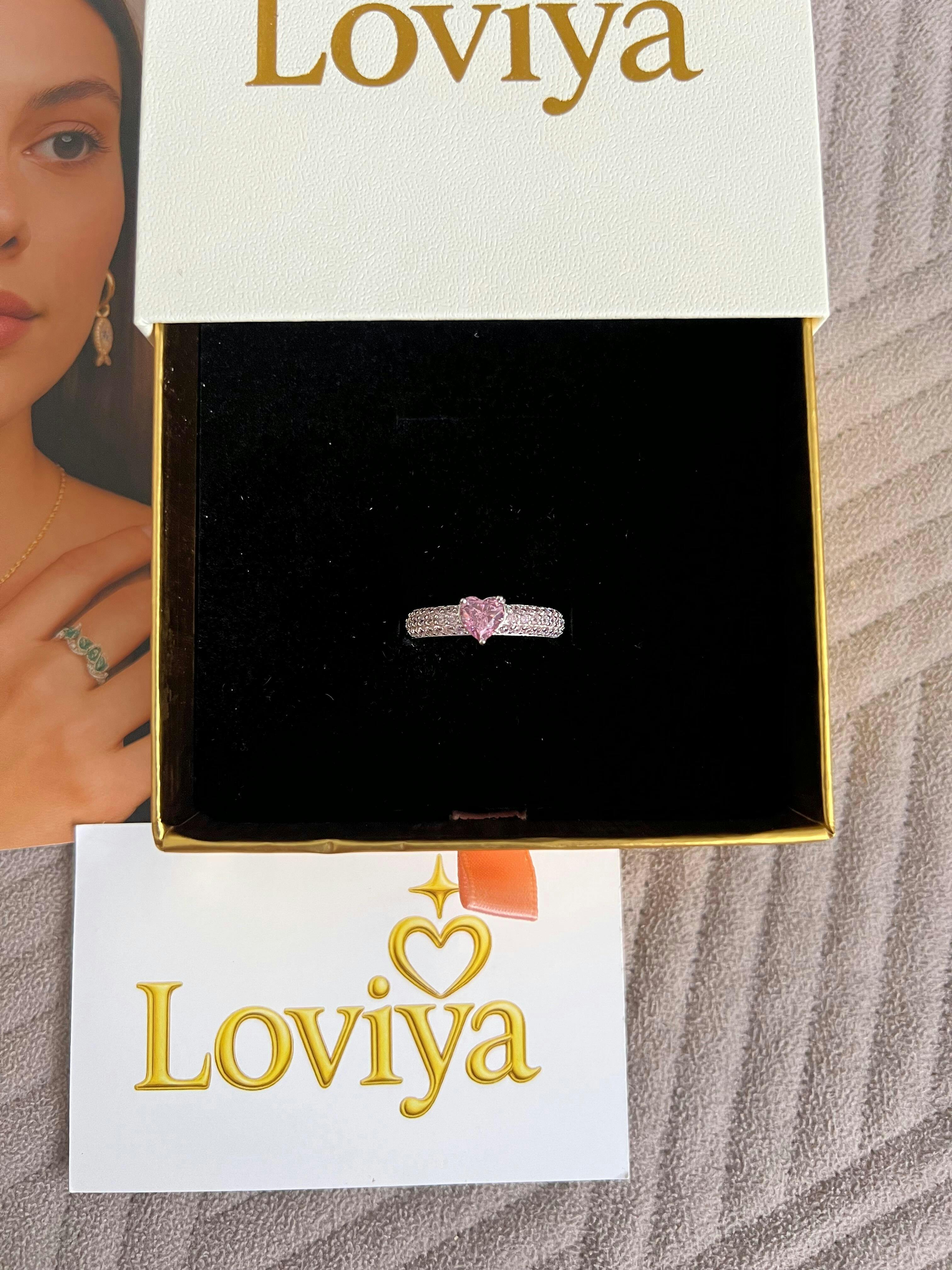 925 Silberring mit Herz-Zirkonia in Rosa und funkelndem Zirkonia-Rand | Loviya